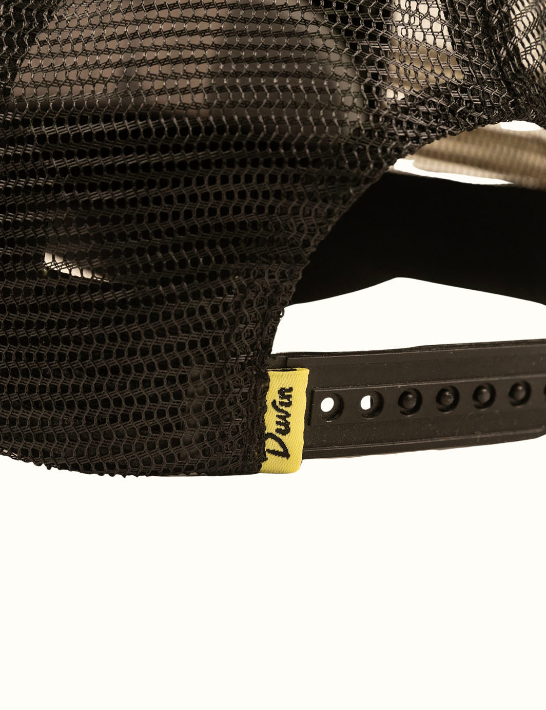 - Duvin branded woven label on back snap